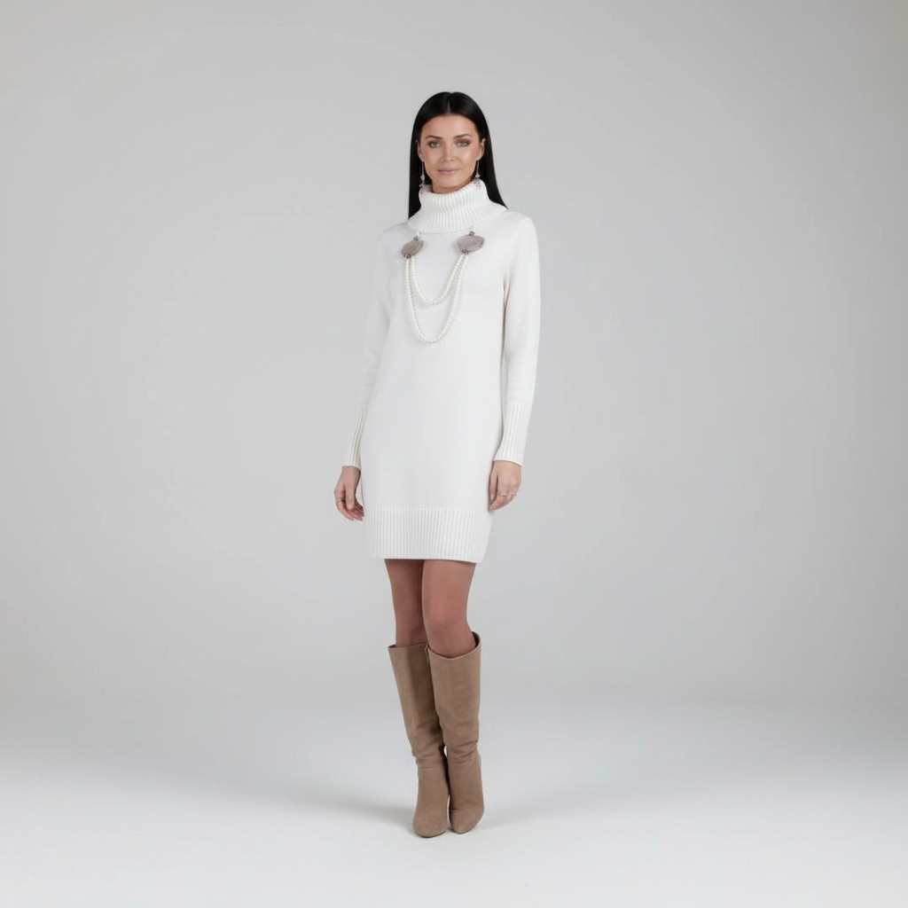 Are you looking for the perfect versatile Autumn-to-Winter dress? Well look no further! This relaxed cowl neck sweater dress was designed for all of you “On the Go” gals! The dress is knee-length with a ribbed hem-line and long, loosely fitted sleeves.